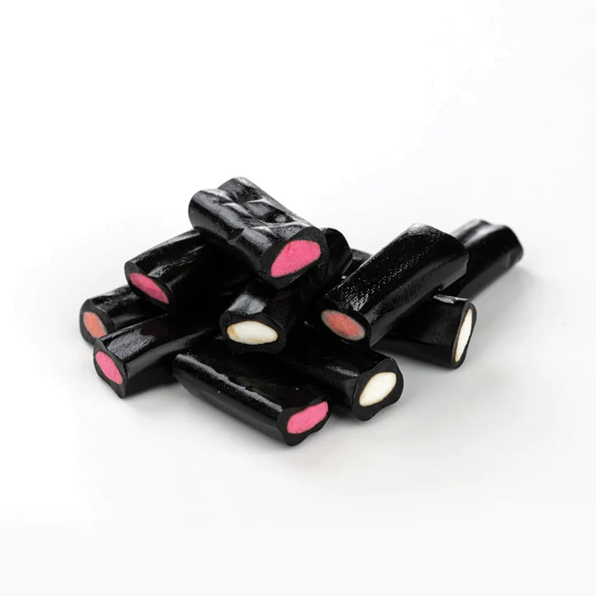Excellent quality licorice! These are Licorice tubes filled with a sweet Chocolate, Strawberry and Vanilla cream. Approximately 100 pieces per 1.1 pound. Imported Dutch licorice candy.
