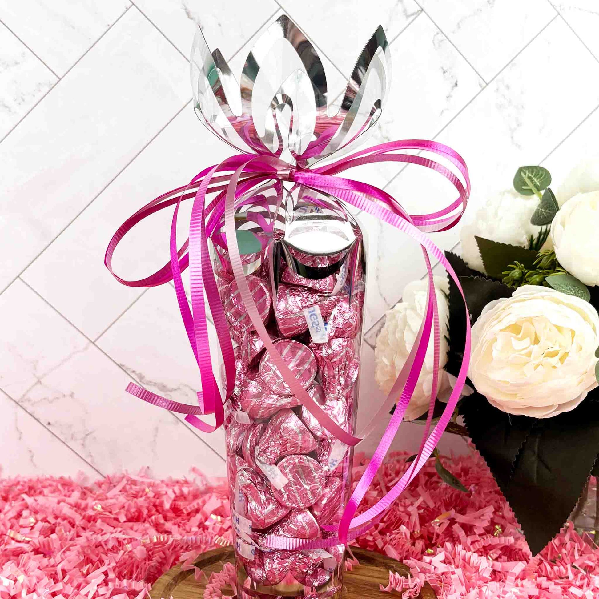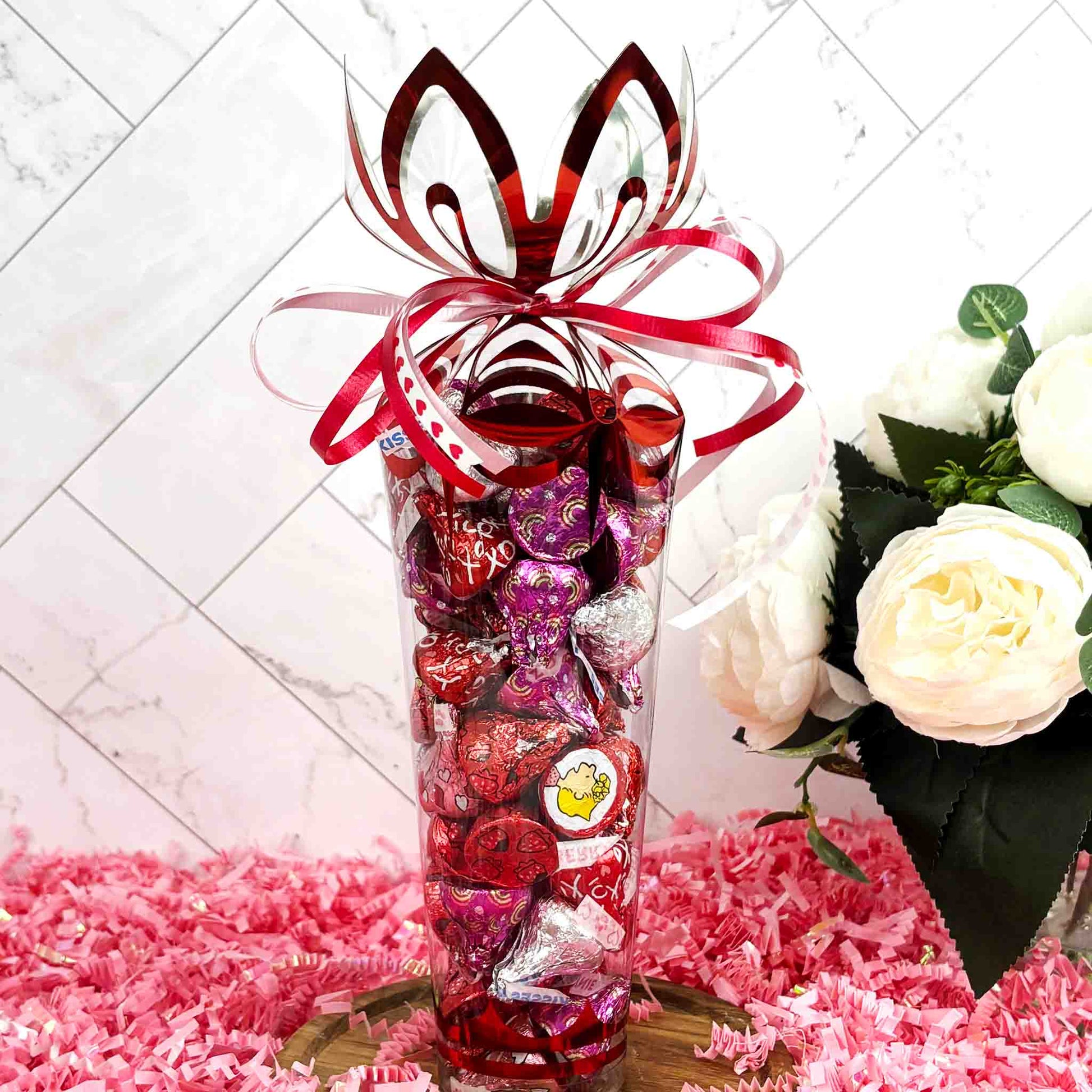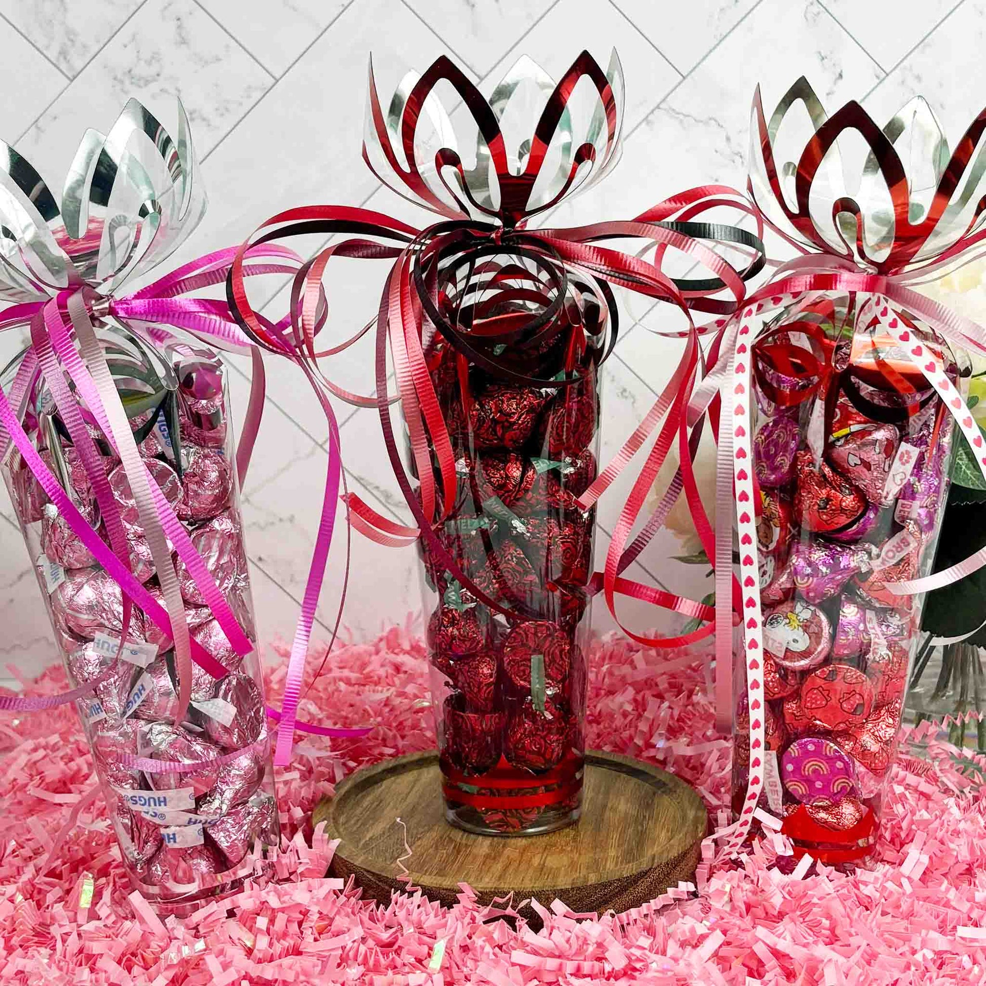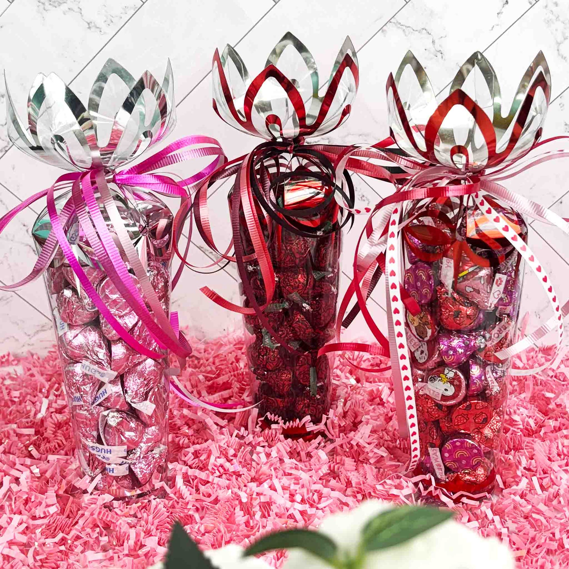 Give the gift that resembles a flower but even better because it's filled with Kisses! This beautiful gift would be the perfect gift for any occasion but especially for your perfect valentine this year! Chocolate has always been a popular gift since ancient times. In the court of Versailles, chocolate was the symbol of love and with these kisses these gifts are full of love! Each come with an assortment of kisses of different colors.