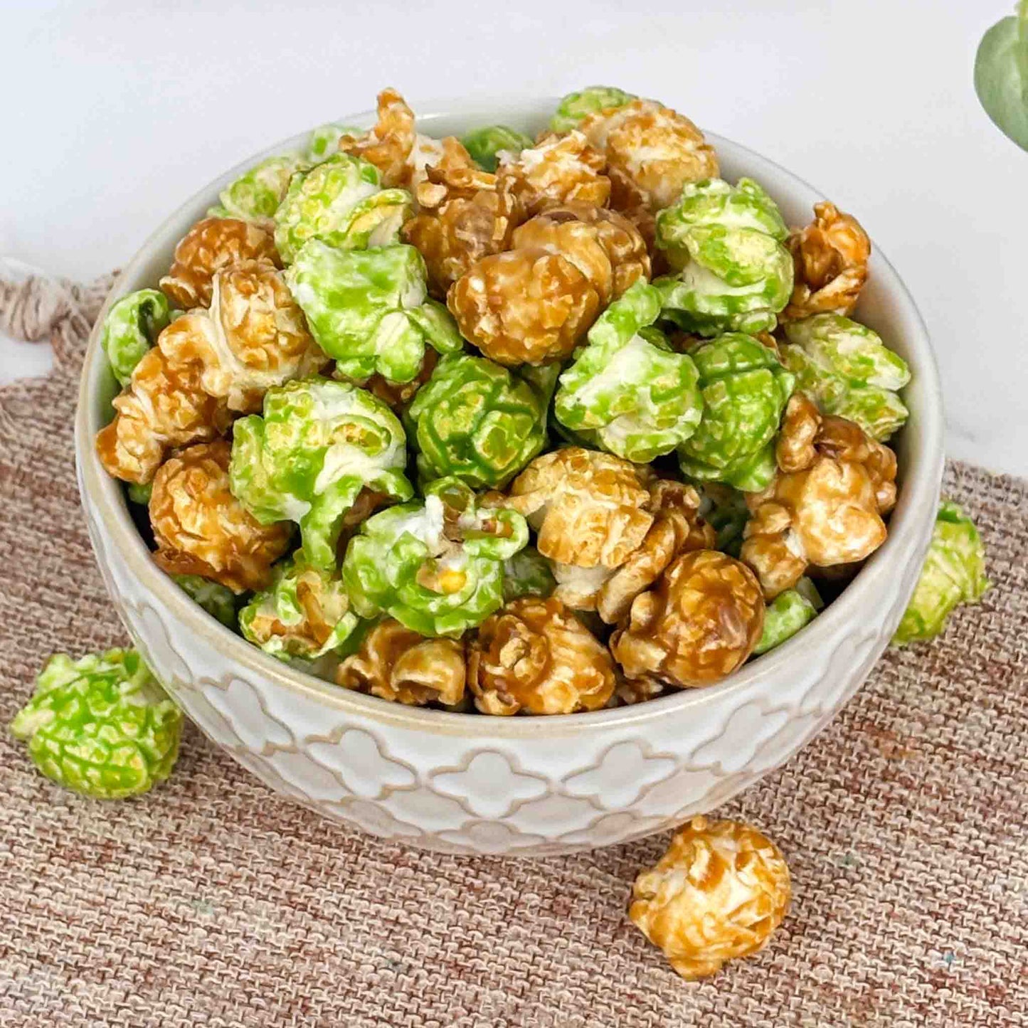 Fresh popcorn coated with the delicious flavor of caramel apple! Yum!