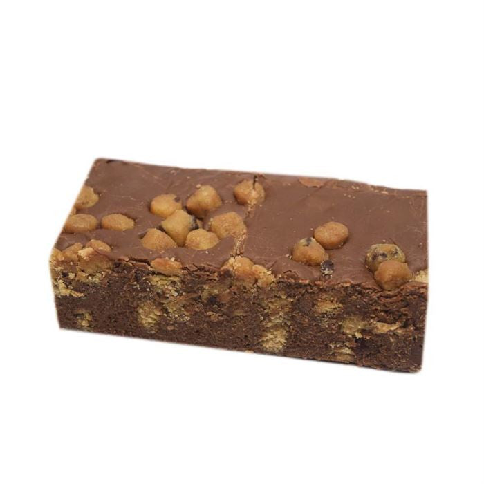 Try not to pick the cookie dough off before you take a bite! This piece of decadent fudge is loaded with soft chunks of Cookie Dough! Each block is a 1/2 lb of chocolate!