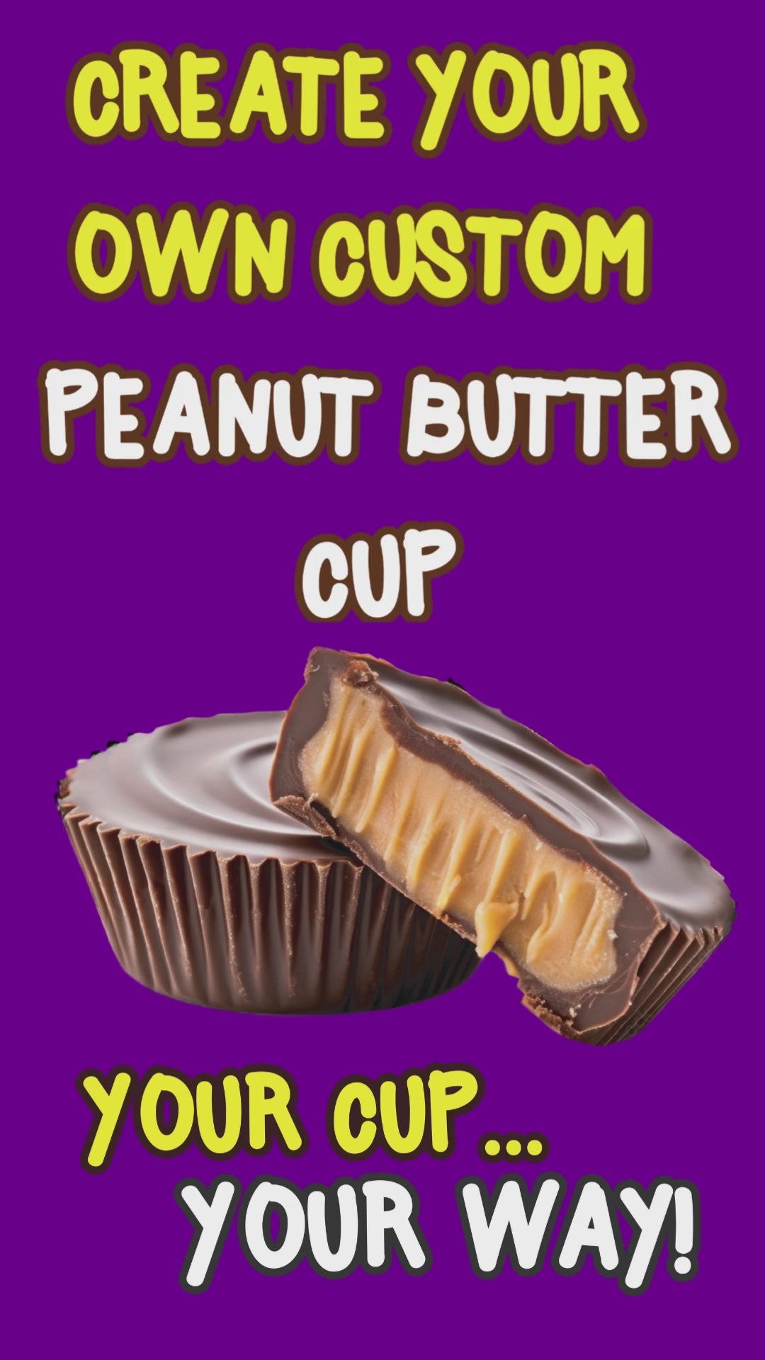 Create a personalized peanut butter cup for yourself or as the perfect gift for a peanut butter cup lover. This giant, custom peanut butter cup weighs is 6 inches in diameter, over 1.5 inches tall and weighs in at about 1.5 lbs. Choose from milk, white, or dark chocolate for the base, and then choose up to three items for our master peanut butter cuppers to mix-in with the peanut butter. We'll also put some on top, just for fun. This custom peanut butter cup is sure to be a hit for a gift, a party, or for a day when you want to enjoy something unique just for you.