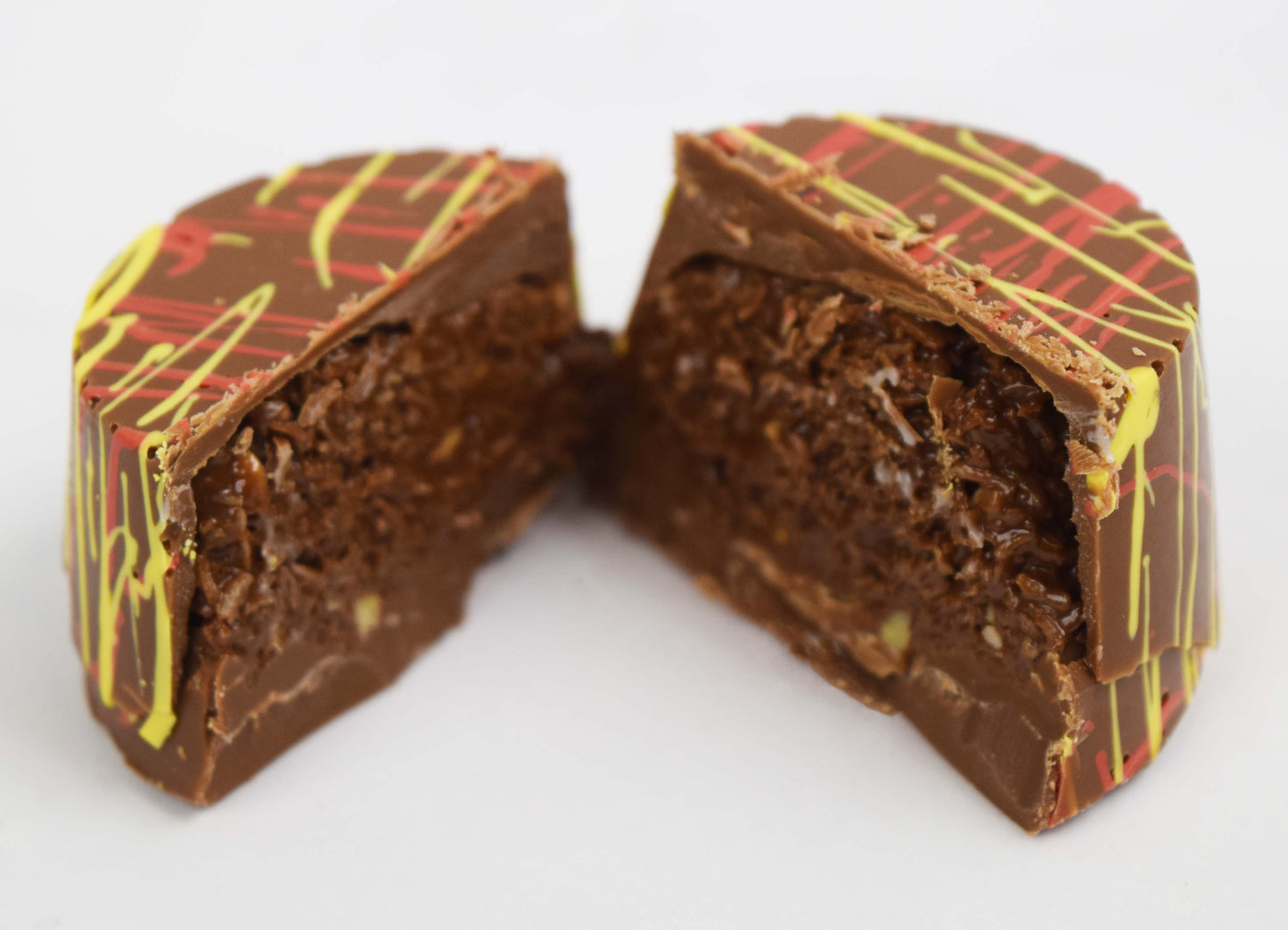Experience pure Chocolate and Hazelnut decadence with every bite of our newr Dubai Domes. Encased in a Smooth and Creamy Milk Chocolate shell, each dome is filled with velevty, indulgent Hazelnut and Chocolate filling with a delightful surprise of crunchy knafeh fried dough inside. The perfect gift for any chocolate lover, these domes are sure to satisfy your sweetest cravings with every bite.