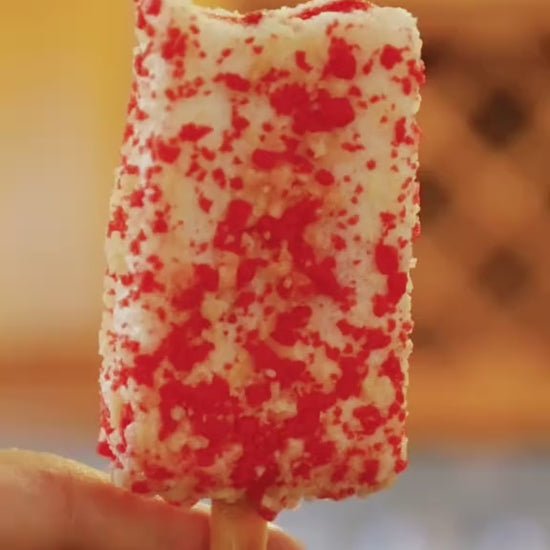 Made with creamy vanilla with a luscious strawberry core, and coated in signature cake coating, these Freeze Dried Strawberry Shortcake Eclair Ice Cream Bars are a crunch of heaven.