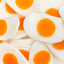Eggs are not just for breakfast anymore, especially these Gummi Eggs. These gummies look just like real eggs but they're not, they're Gummi Eggs. They are just about the size of a real fired egg, 3 inches by 2 inches and have bright yellow center (yolk) and a nice white.