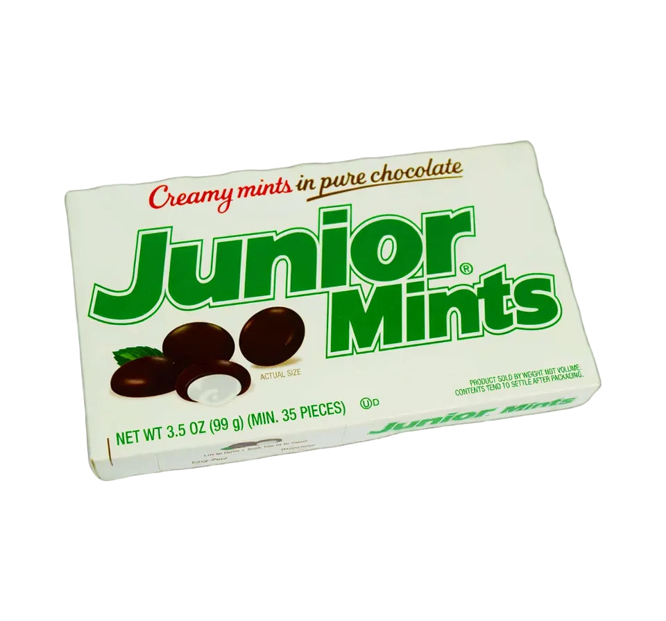 Enjoy a box of your favorite blast-from-the-past minty treats today! So creamy, dreamy, and delicious, Junior Mints are the chocolaty sweets that you remember from your carefree days of childhood. Grab a handful of your favorite rich and refreshing nuggets of goodness and don't miss out on the sweet, sweet nostalgia.