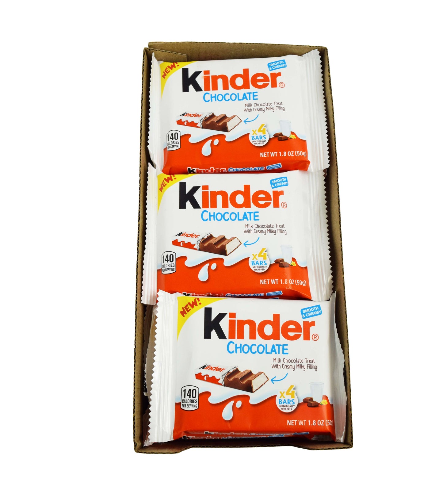 Indulge in the creamy, dreamy deliciousness of Kinder Chocolate Bars! Coated in smooth and velvety Milk Chocolate and filled with sweet, rich Cream, these Filled Chocolate Bars are truly a decadent treat to enjoy whenever you need a little boost. Each pack comes with 4 Individually Wrapped bars, and each 18 Count Box comes with 72 Bars.