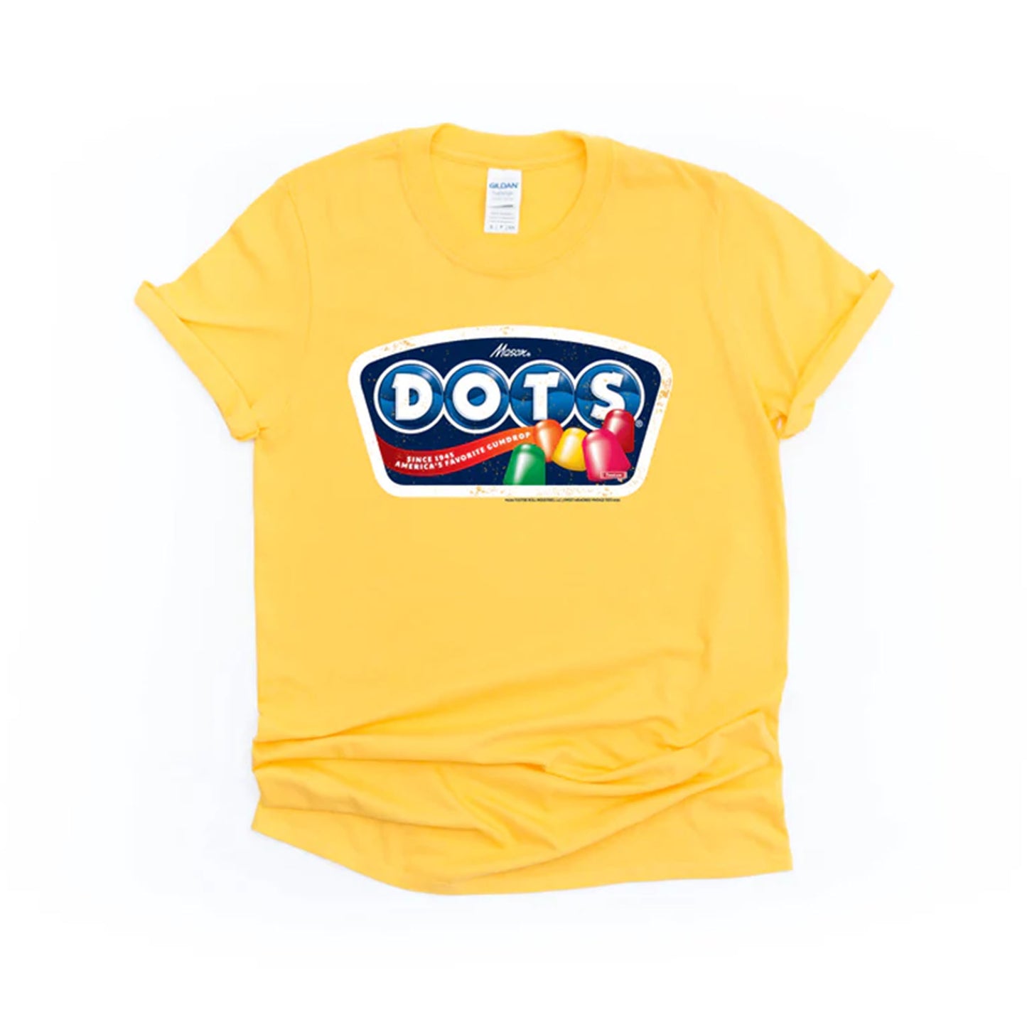 Make a bold statement in this bright and sunny tee featuring everyone's favorite colorful gumdrops, DOTS. Wear this retro DOTS T-Shirt to show off your loyalty to a candy classic, and look good while doing it.