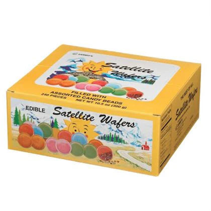 Satellite wafers, Flying Saucers, UFO candy - call them what you will. These saucer shaped, melt in your mouth wafers are filled with little candy beads. A popular party favorite that candy lovers and space enthusiasts will love!