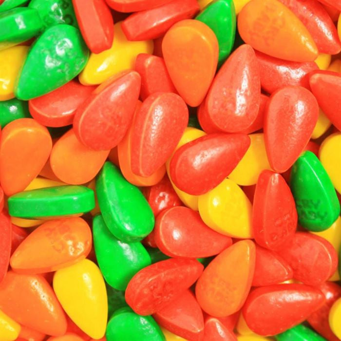 Make your inner child smile instead of cry with these delicious mildly sour candies! Shaped like tear drops, they are great for decorations, gifts, and games at baby showers! Smooth pastel colored coats have an eye catching shine. Flavor mix includes lemon (yellow), orange (orange), cherry (red) and lime (green).