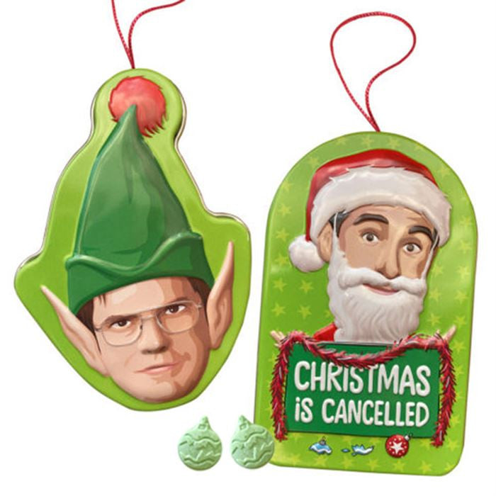 The PERFECT candy tin for any fan of The Office! Each hilarious tin features delicious ornament-shaped Green Apple candies inside.