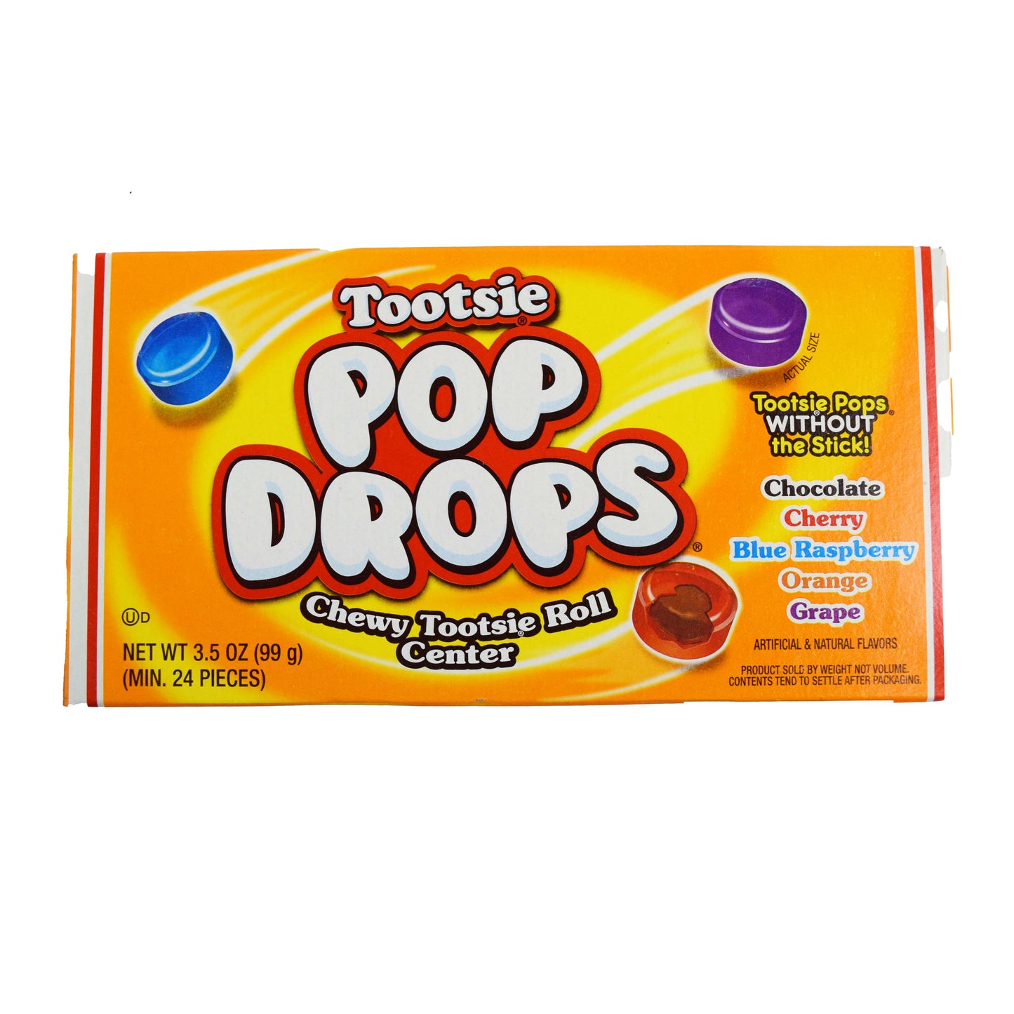 All the yummy goodness of a Tootsie Pop without the lollipop stick to get in your way as your chowing down! And it wouldn't be a Tootsie product without that delicious Tootsie Roll center in each and every bite-sized piece!
